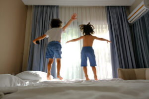 Opte por acomodações que sejam adequadas para famílias, como hotéis com quartos maiores, resorts com áreas de recreação infantil.
