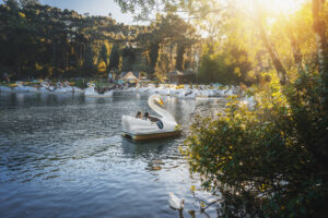 Esse é um lago lindo com águas escuras e um parque ao redor. Por isso, esse é um lugar muito popular para caminhar, andar de pedalinho e tirar fotos.
